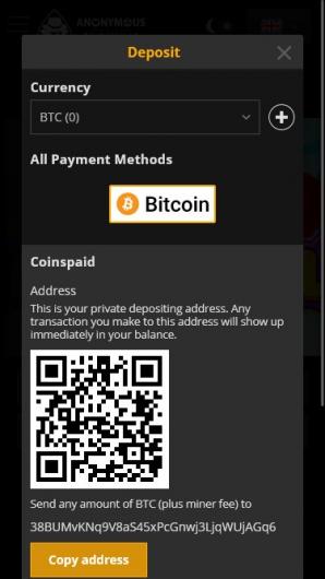 Joining this place is very easy, as it only requires a software wallet. Another important advantage is anonymity. Thanks to this venue’s auto-registration option, players can get quick access to provably fair games by trustworthy software developers at any time and bypass the enrollment. There is no reason to provide personal information such as a bank account, home address or country before playing at Anonymous Casino, as Bitcoin and other alternative crypto units represent a decentralized currency. Furthermore, virtual tokens carry low transaction fees and have instant payout times, the main reason for their popularity among players.